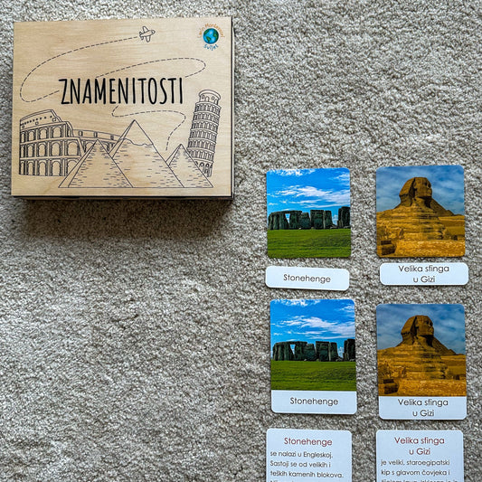 Montessori kartice u drvenoj kutiji - Znamenitosti