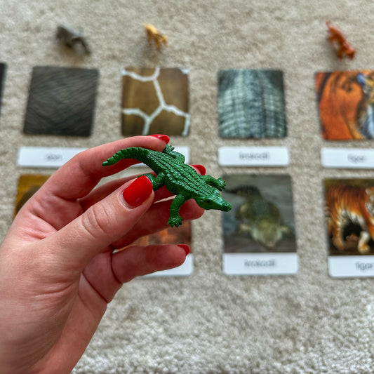Minijature i Montessori kartice u drvenoj kutiji - Prepoznaj životinju