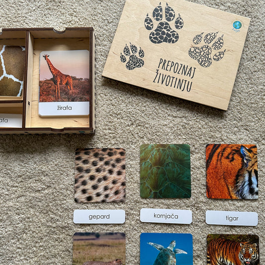 Montessori kartice u drvenoj kutiji - Prepoznaj životinju